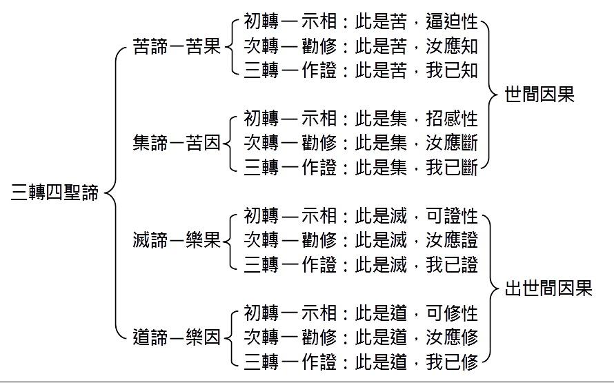四聖諦是佛陀初轉法輪時所說,臨涅槃時又再三叮嚀弟子們,對四聖諦有不解的地方,可提出來問。可見在佛陀的一代時教中,對四聖諦的闡揚是自始至終的。尤其在初轉法輪中,佛陀更三度演說四聖諦的妙義,稱為「三轉十二行相」。
