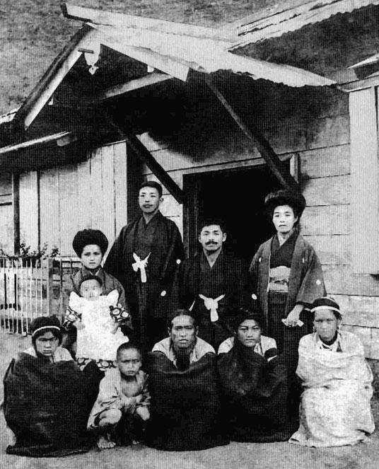 (後排左起貝克抱下山一、大塘正藏、下山治平、大塘夫人)