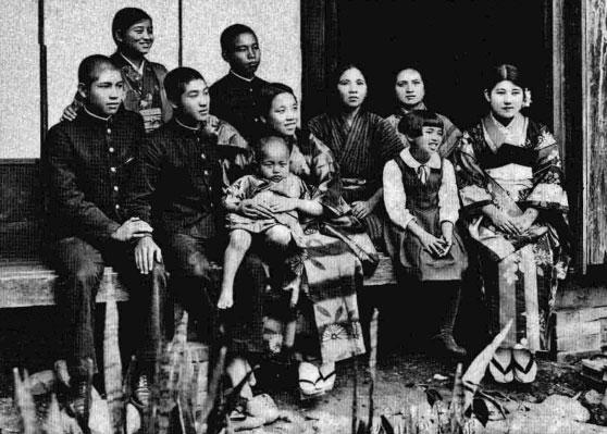(前排左起:下山宏、一、晃男、豐子、靜子,後排左起:敏子、昌男、亞娃依、貝克)