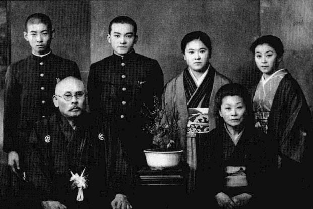 (前排左文枝父井上昌,右母片桐喜久。後排左起井上修、井上昌三、井上文枝、井上春代)
