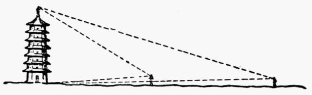 「在最遠處的人望向這座高塔的頂端,是看不見的,因爲地的圓弧線遮蔽了他。在近處觀看的人看來,那高塔的上半部便可和圖書看見了,但下半部還是看不見。最後,那觀看的人再走近一些時,便能完全看見這高塔了。倘若地面是平的,那便完全不是這個樣子了。從任何遠近的地方看去,那塔的全部應該都能看見。從遠處看,自然沒有比近處看得清楚,這是因爲距離遠的緣故;但它總能從頭到尾都看得見。」