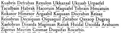 「到目前為止,的確是的。但是假若你做了第一個臆測,然後第二個,然後第三個,而它們全都彼此支持,你便已更有自信是摸對了路,對吧?我一開始便懷疑殷戈所用的那些字並非取自特利牟斯的那些。它們也是同樣的秘法巴比倫風格,卻不盡相同。然而,如果殷戈想要一些以他感興趣之字母為首的字,他在特利牟斯中便可找到他想多少就有多少。為什麼他不用那些字呢?」