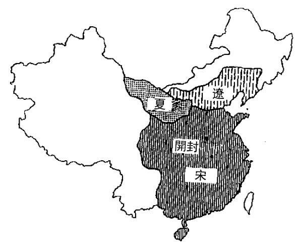 宋朝之中國更未將西夏放在眼裡。理論上西夏佔領著中原領土之一部,向宋稱臣。當公元一〇三八年西夏獨立自稱皇帝時,宋廷立即稱之為「反」,並且停止互市。可是中國派兵征剿,連戰皆北。宋朝一再派兵,卻連失城寨,而且死傷慘重,遷延到一〇四四年,中國所能獲得的下場不過是使西夏之主在文書上自稱「男」,上書於「父大宋皇帝」,而在其本國內稱帝如故,因之中國也年「賜」絹銀茶葉共二十五