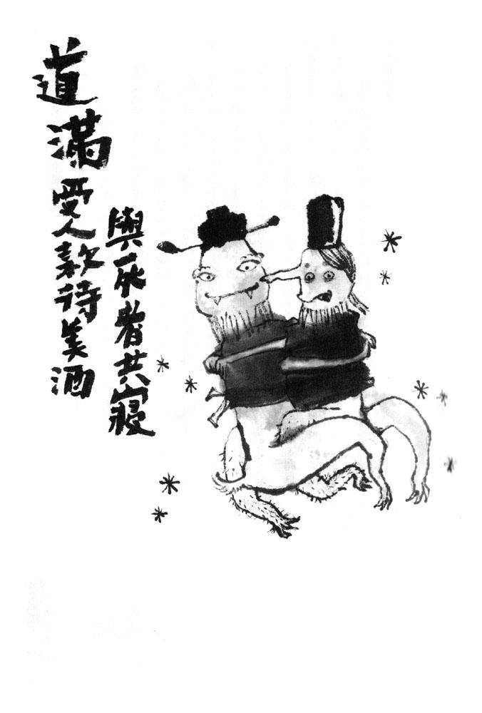 有些小人會從琦麻呂的胸部和腹部冒出頭。也有其他小人似乎潛入琦麻呂的體內,正在戳他的心臟和肝臟、骨頭、血脈等。