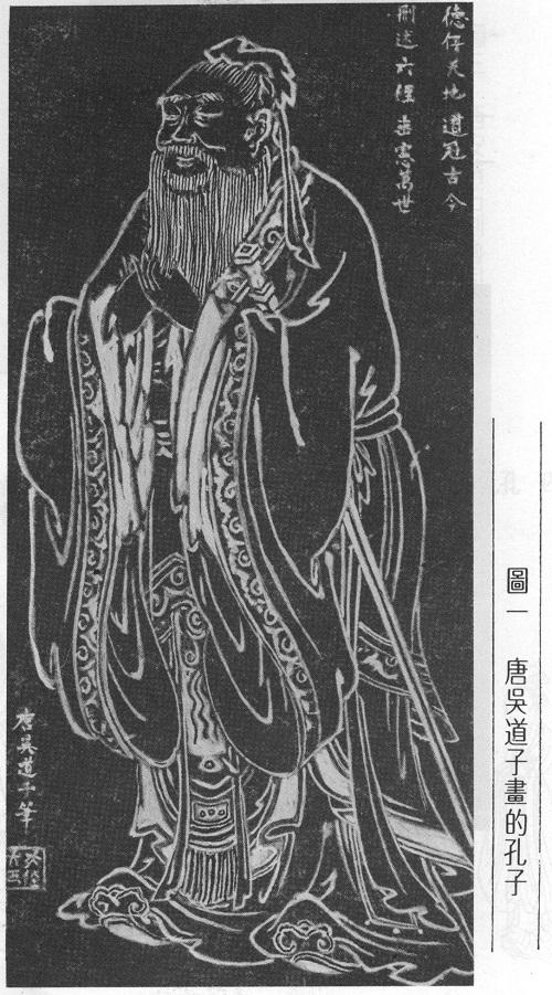 從前在大陸上有張最流行的聖像,是曲阜孔廟裏的一座石碑,約有六尺高,刻著一幅大像,在像的左下方有清清楚楚五個楷書大字「唐吳道子筆」(圖一)。我在民國二十年時曾到過曲阜的孔廟,那裏有許多攤販,全是賣碑帖拓片的。那時物價低廉,我花了一塊錢,買了一厚疊的墨塌拓片,其中當然有這張像。那時我萬沒想到會來臺灣一住三十多年,舊日文獻竟少得可憐。我那一疊當日不值錢的拓片,現在竟渺不可尋。近年出的孔子書也不少,可是只有張其昀先生著的「孔子新傳」裏搜集的圖片最多,講解也扼要、易明,居然有張吳道子的圖。