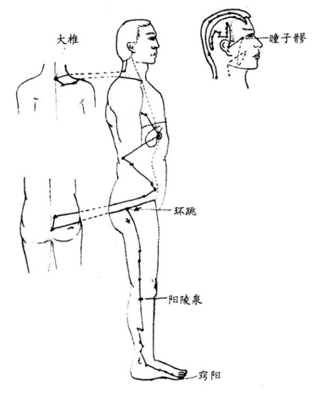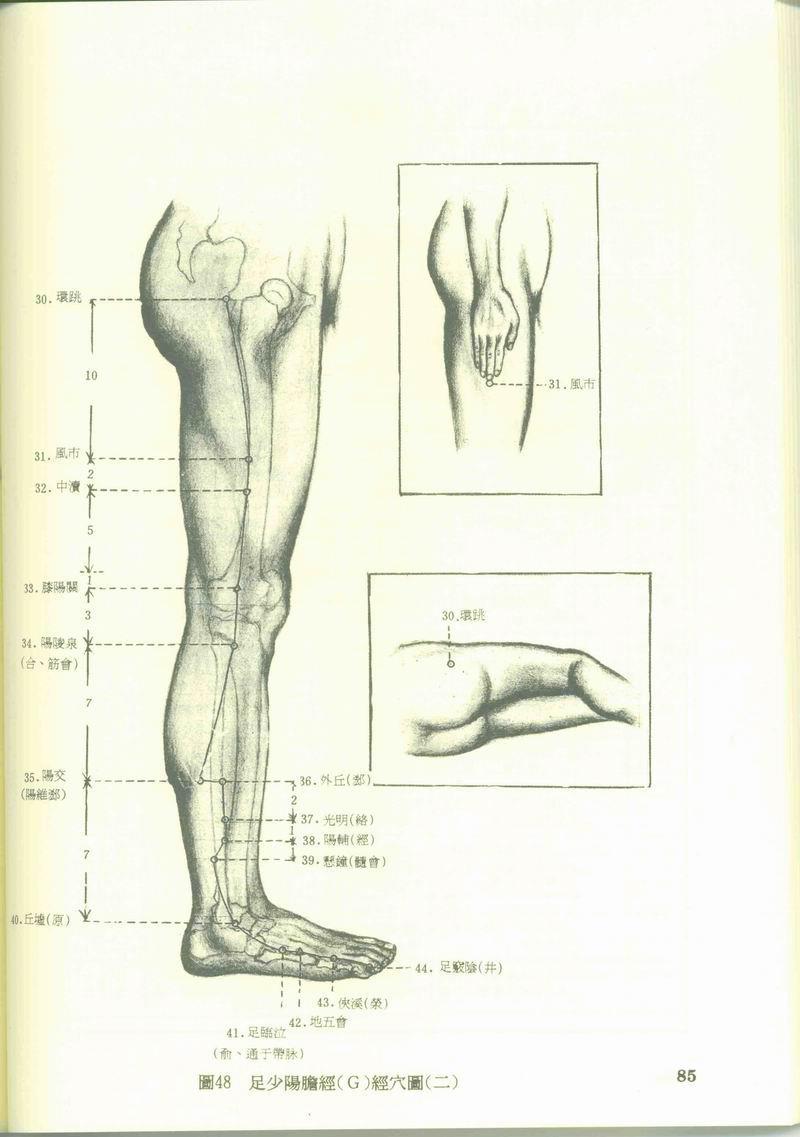 中瀆 | 在大腿外側中點,膕橫紋上五寸處取穴 | 祛風化濕、疏通經絡 | 下肢麻痹、麻木、半身不遂 | |
