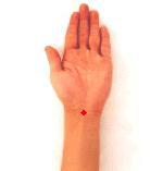 大陵 | 仰掌,腕橫紋正中,掌長肌腱與橈側腕屈肌腱之間取穴 | 寧心安神,寬胸和胃 | 心痛、善笑、癲狂、癇證、口臭,吐清涎、咳喘、咳血、庵疥 備註:輸穴 | |