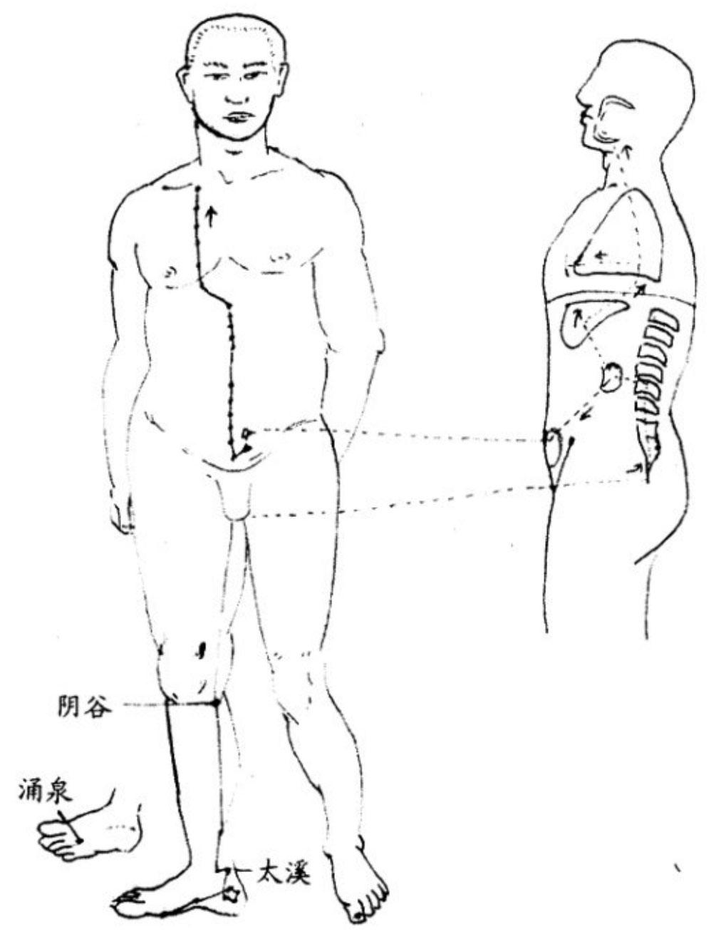 平常保養:每星期在肝經及腎經「如圖」進行按摩兩至三次,每次每一個主穴位三分鐘。