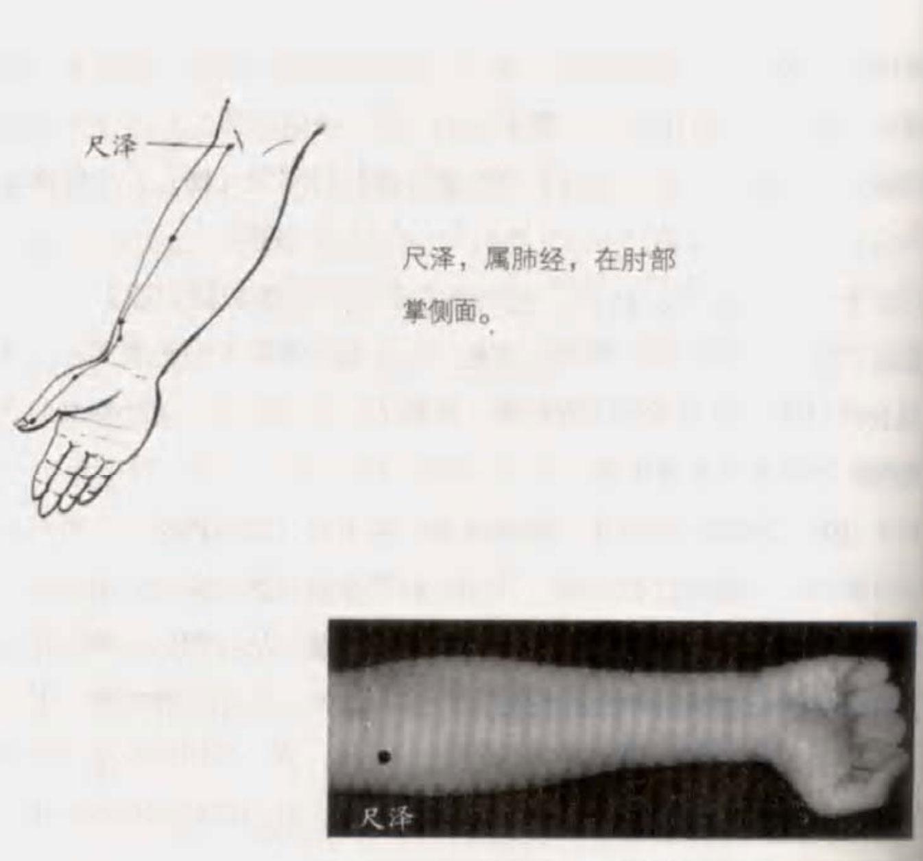 病發疼痛時按摩肺經的尺澤穴「如圖」,將姆指壓在正確的位置。當發生疼痛時,按摩正確的穴位會非常痛,因此很容易找到正確的穴位。壓住正確的穴位後,停留在穴位一分鐘,只要壓住,不需要揉動,可以立即止住疼痛,通常和圖書可以維持一天到兩天不發病。經常按摩尺澤穴,可以逐漸減少發病的機率。