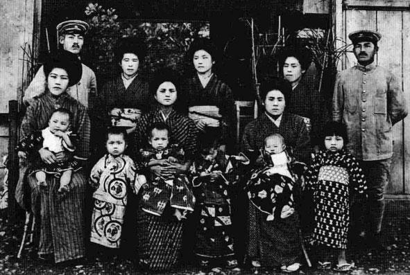 (後排左起貝克抱下山一、大塘正藏、下山治平、大塘夫人)