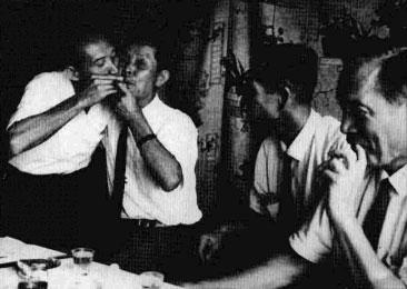 昔日霧社公學校的內田賢吉回霧社來,下山一以“愛諾米”泰雅之禮歡迎老同事,大家相見歡。