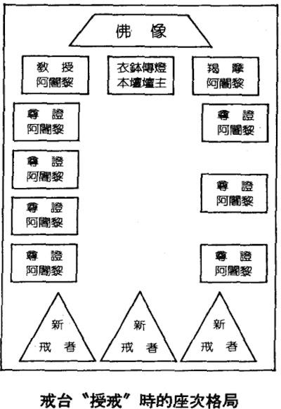 現將受戒羯磨(儀式)的位置圖,舉列如下: