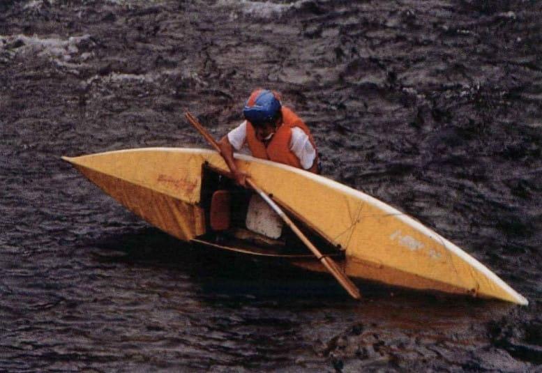 「正規的一人槳獨木舟是折疊式的,長三.八公尺,重十 六公斤,在木質外框上鋪上帆布,是世界上最輕型、也是最接近清水的船隻。」男子這麼說。
