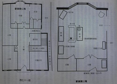 「讓我們回到大廳。」凡斯繼續說,並且引領我們走進總機斜對角的小會客室。如同我之前已經解釋過的,這間會客室就在上樓樓梯的旁邊,左面的牆緊臨著通往側門的後廳通道(請參考附圖)。